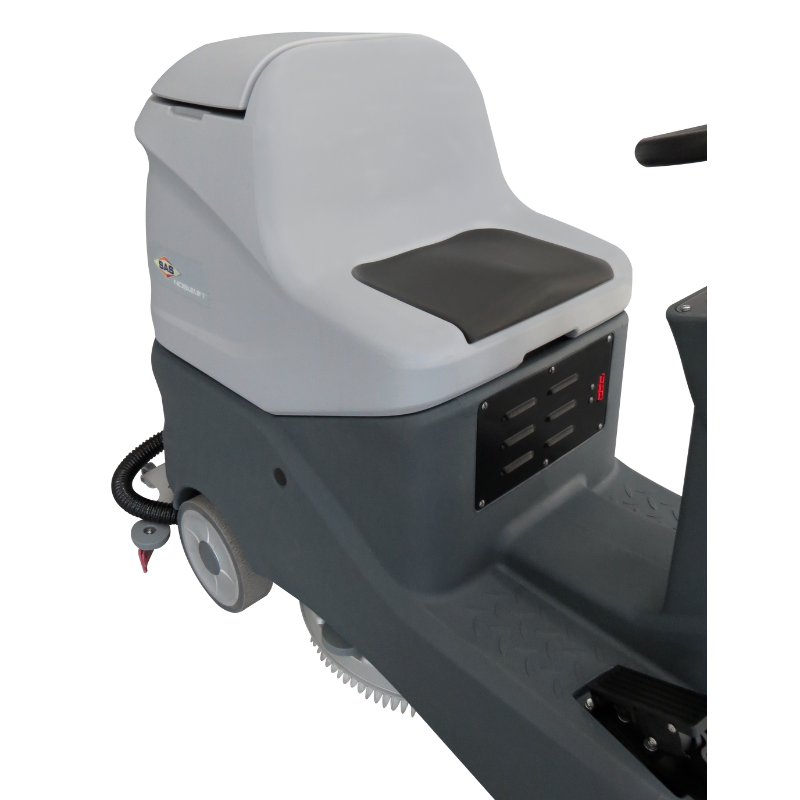 Assento equipado com sensor de segurança desativa o equipamento quando o operador não está a bordo.