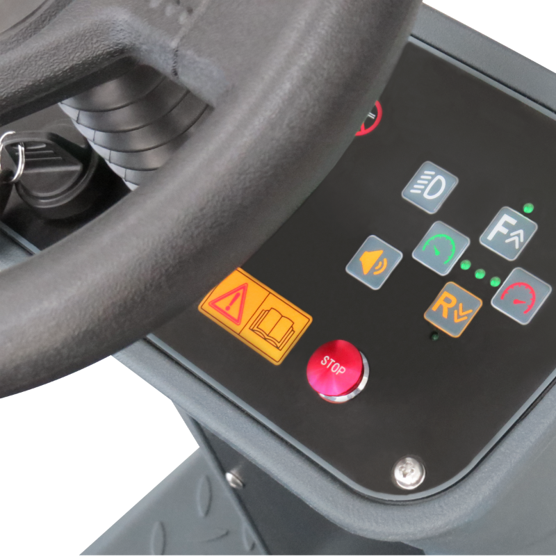 Equipamento compacto com raio de giro pequeno, permite operação em corredores estreitos e oferece grande produtividade.