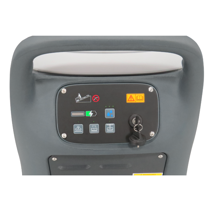 Painel de controle intuitivo com informação de nível de bateria e acionamento das principais funções.