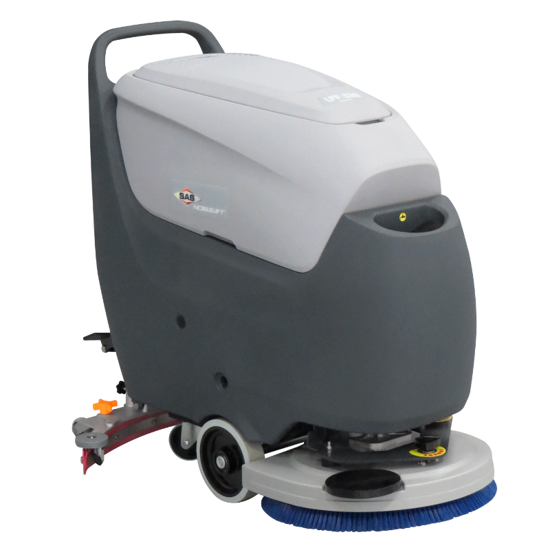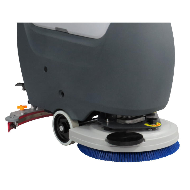 A pressão da escova contra o piso é ajustável, permitindo uso versátil e eficiente em diferentes aplicações.